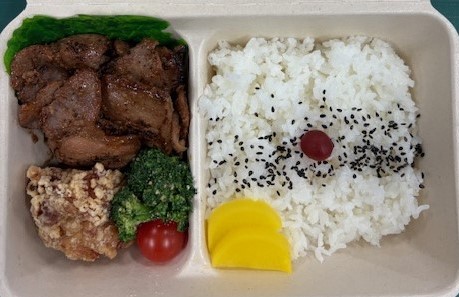 ゴール後は、ご当地グルメでおなじみの「上対馬とんちゃん×空自空上げ弁当」をご希望の方にご用意します。